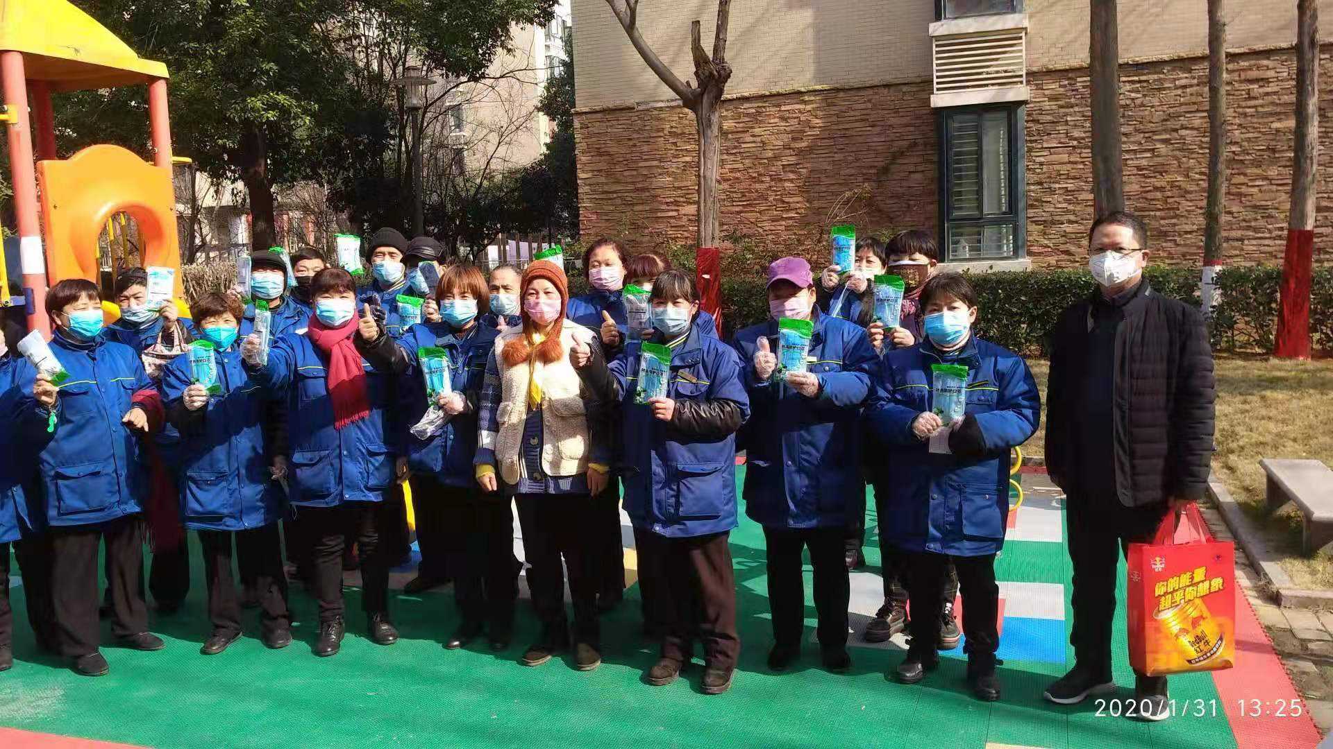 張五紅(前中)把口罩發(fā)給建業(yè)森林半島附近的環(huán)衛(wèi)工人
