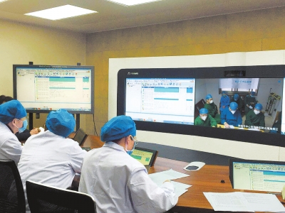 省級(jí)醫(yī)療救治專家組近日為南陽市中心醫(yī)院新冠肺炎患者遠(yuǎn)程會(huì)診。付莉萍攝