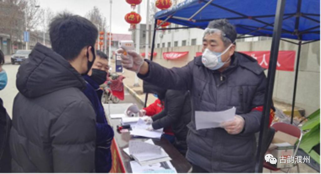 后畢莊執(zhí)勤人員佩戴口罩、袖標上崗值班