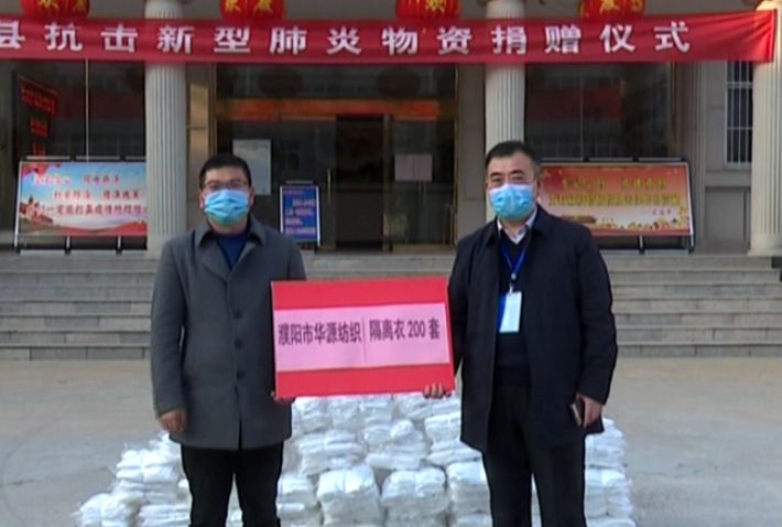 2月12日,范縣農(nóng)商銀行捐款20萬元,大豐國際捐款兩萬元、范縣復明眼科醫(yī)院捐款兩萬元,丁氏印刷捐款1萬元,濮陽市華源紡織有限公司捐贈隔離衣200套,愛心企業(yè)用實際行動詮釋了大愛無言,為全縣打贏疫情防控阻擊戰(zhàn)增添了信心和力量。