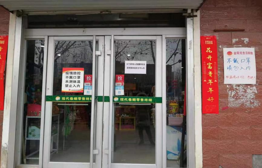 商超入口處提醒顧客佩戴口罩、測量體溫