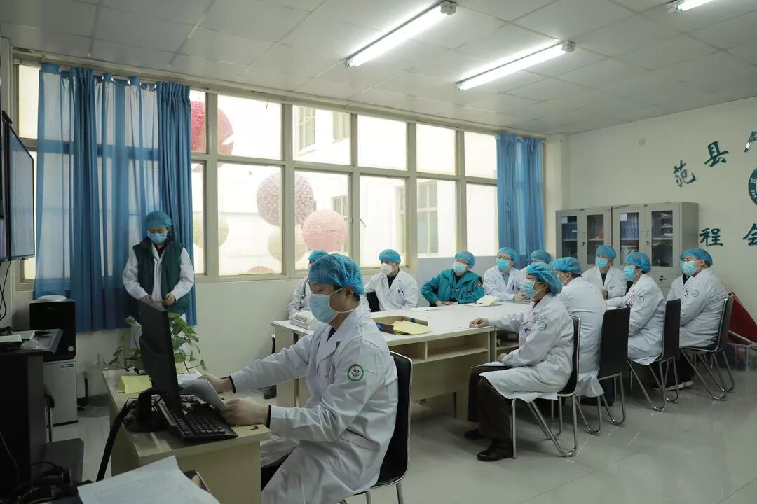 醫(yī)療救治專(zhuān)家組成員在縣衛(wèi)健委四樓會(huì)議室參加全國(guó)新型冠狀病毒感染肺炎診療第五版方案專(zhuān)家解讀培訓(xùn)