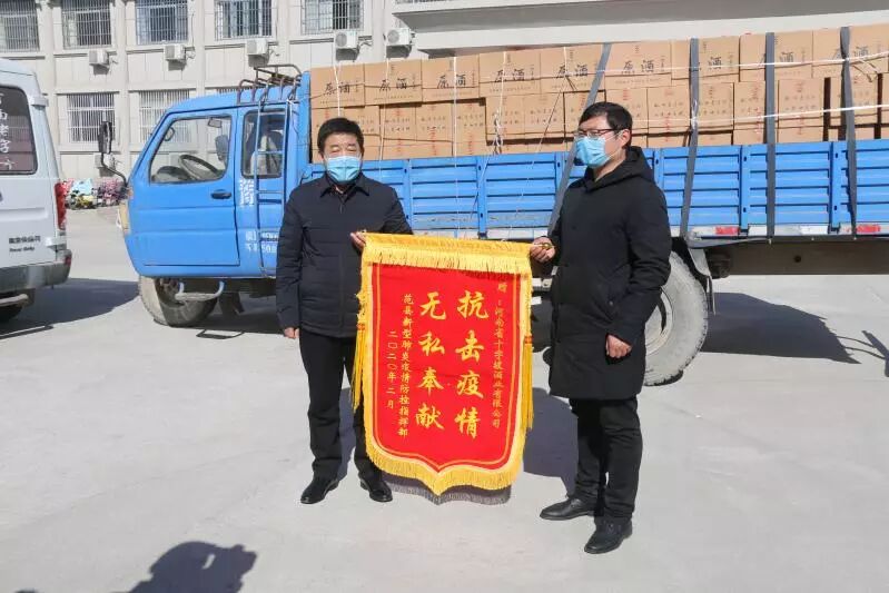 2月16號(hào),在當(dāng)前各種防疫物資緊缺的形勢(shì)下,河南省十字坡酒業(yè)有限公司向縣疫情防控指揮部捐贈(zèng)5噸75度白酒,價(jià)值30萬元,用于新型冠狀病毒肺炎疫情防控工作。