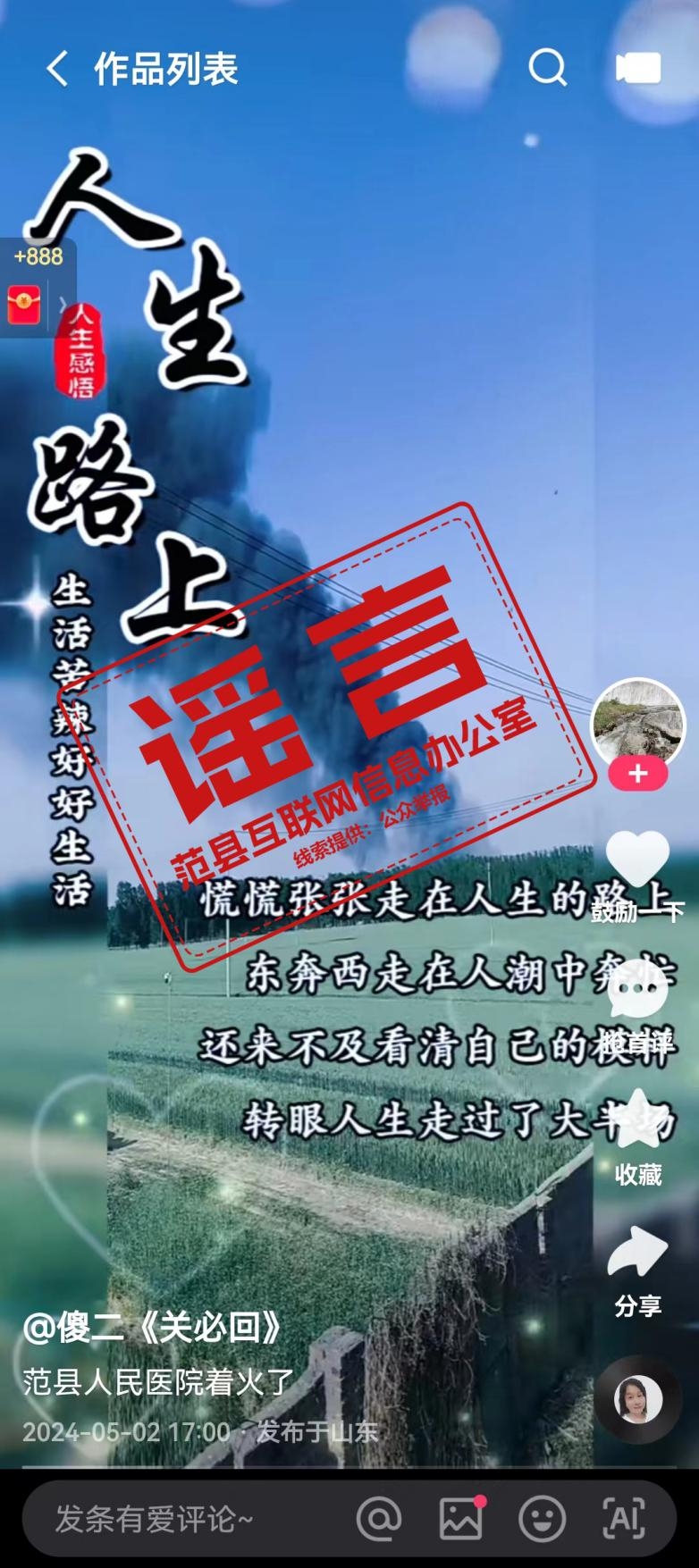 網(wǎng)傳“范縣人民醫(yī)院著火”系謠言