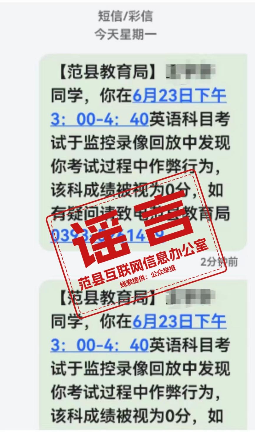 網(wǎng)傳“范縣中考考試作弊被判0分”系 謠言